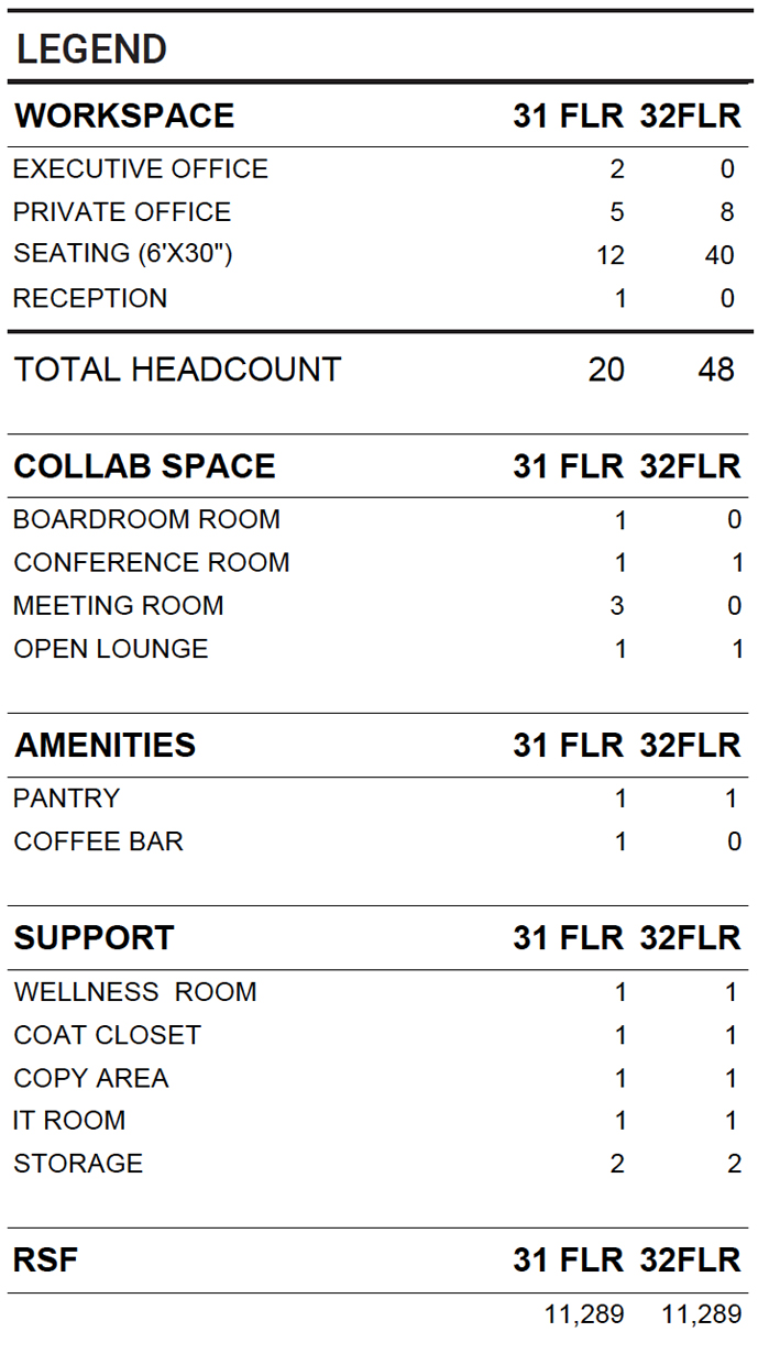 Entire 31st Floor: 11,289 RSF – 2ND GEN