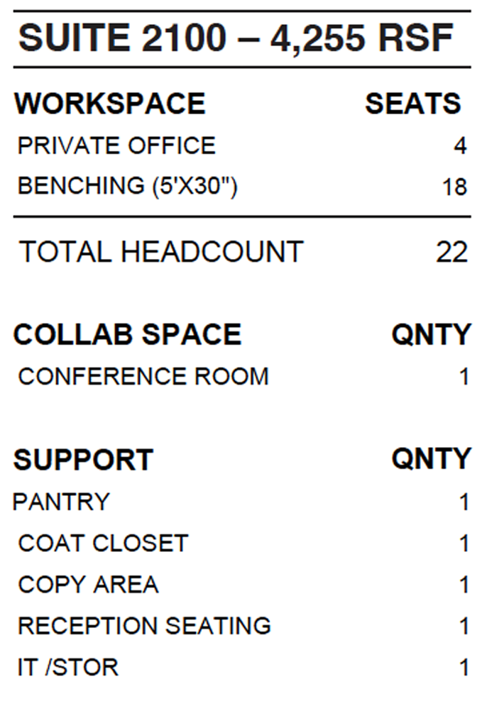 Partial 21st Floor (Suite 2100): 4,255 RSF – 2ND GEN